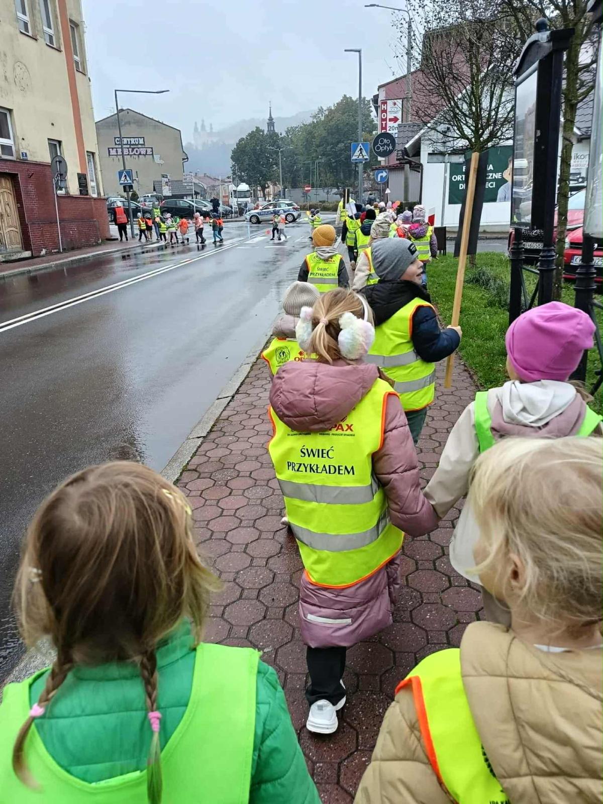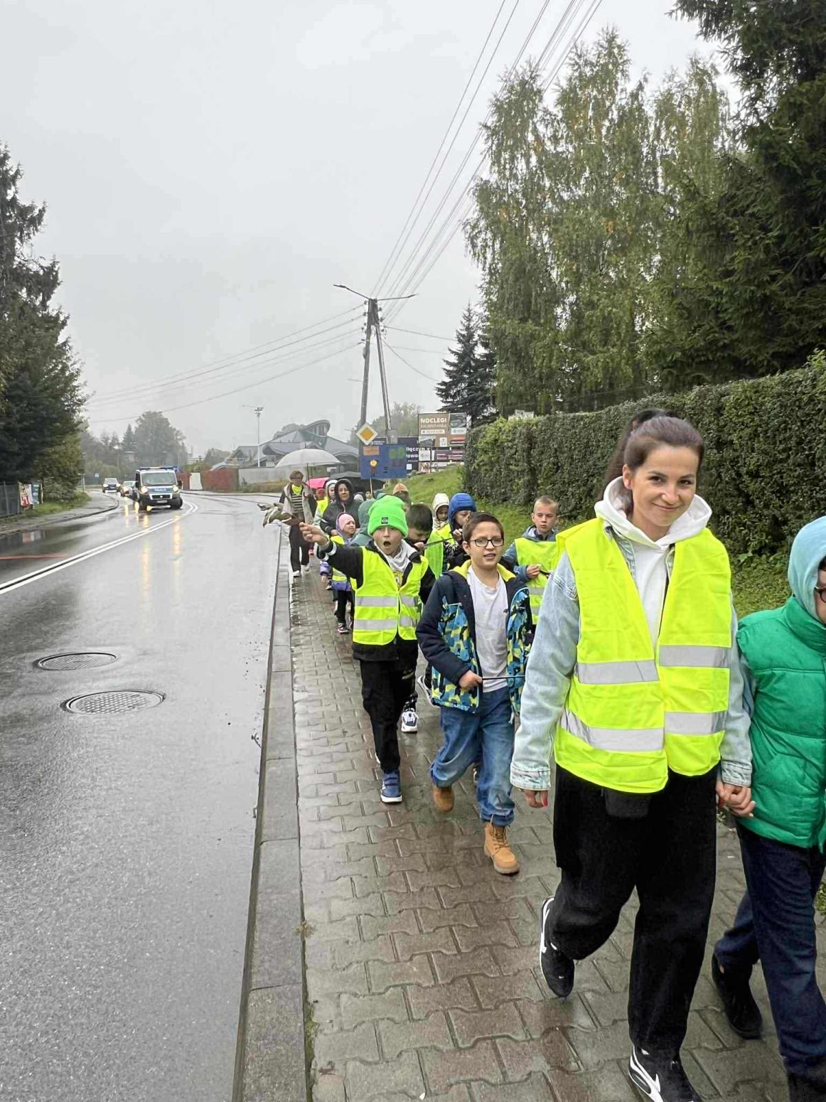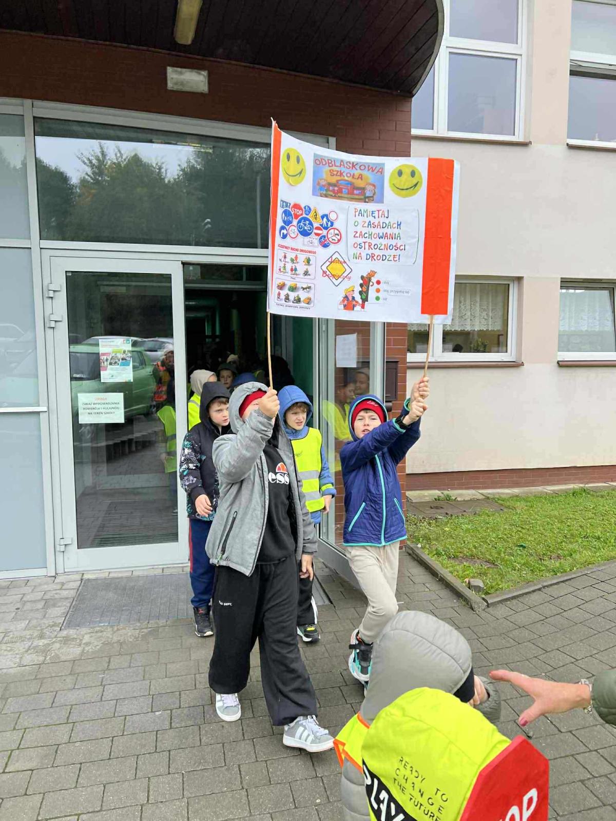 W ramach akcji „Odblaskowa Szkoła” odbył się dziś odblaskowy marsz. Dzieci ze szkoły podstawowej i przedszkola w Kalwarii Zebrzydowskiej wyruszyły w odblaskowym pochodzie ulicami miasta, promując bezpieczne zachowania na drodze. Uczestnicy marszu, ubrani w kamizelki i inne elementy odblaskowe nieśli dodatkowo transparenty, które wcześniej sami wykonali. Dzięki temu uczestnicy marszu byli doskonale widoczni. Na transparentach znajdowały się hasła, rysunki i odblaskowe dodatki, które miały przekonać i uzmysłowić jak istotne jest noszenie i używanie elementów odblaskowych, szczególnie po zmroku.