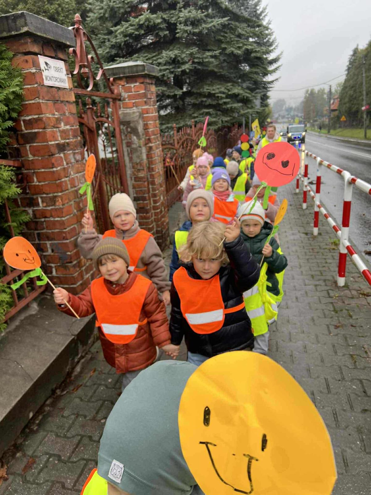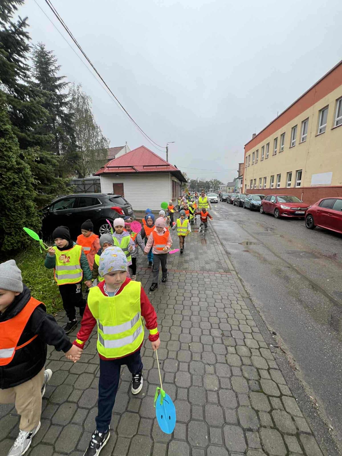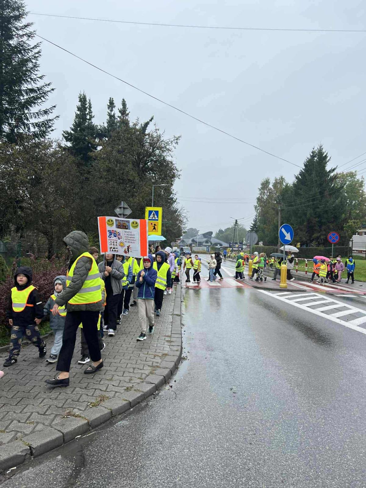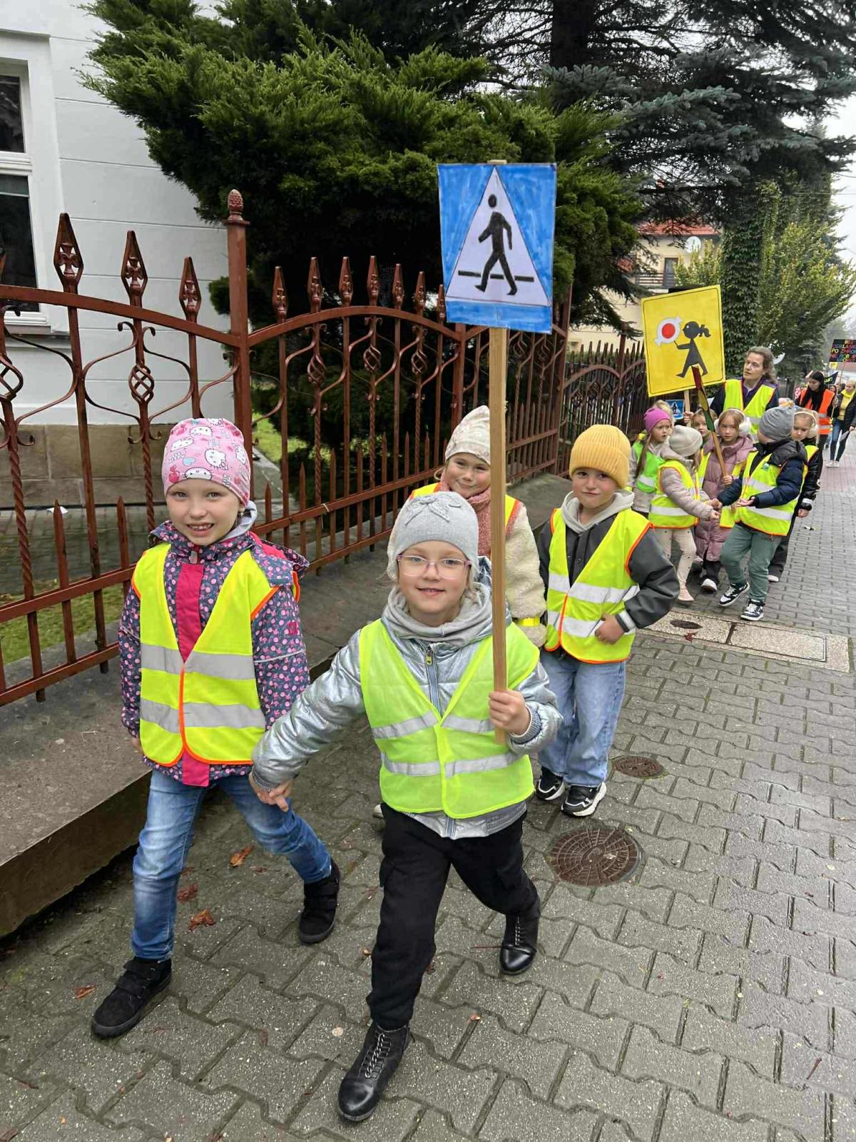 W ramach akcji „Odblaskowa Szkoła” odbył się dziś odblaskowy marsz. Dzieci ze szkoły podstawowej i przedszkola w Kalwarii Zebrzydowskiej wyruszyły w odblaskowym pochodzie ulicami miasta, promując bezpieczne zachowania na drodze. Uczestnicy marszu, ubrani w kamizelki i inne elementy odblaskowe nieśli dodatkowo transparenty, które wcześniej sami wykonali. Dzięki temu uczestnicy marszu byli doskonale widoczni. Na transparentach znajdowały się hasła, rysunki i odblaskowe dodatki, które miały przekonać i uzmysłowić jak istotne jest noszenie i używanie elementów odblaskowych, szczególnie po zmroku.
