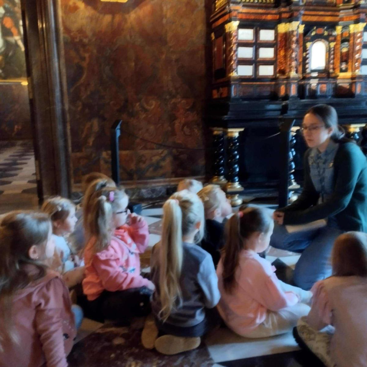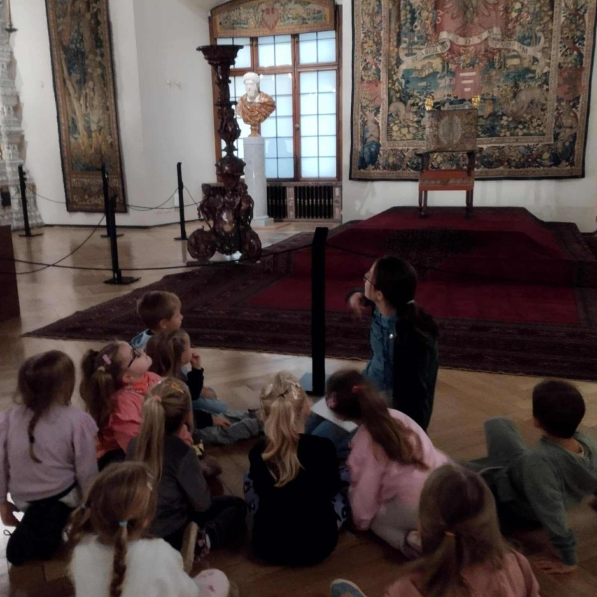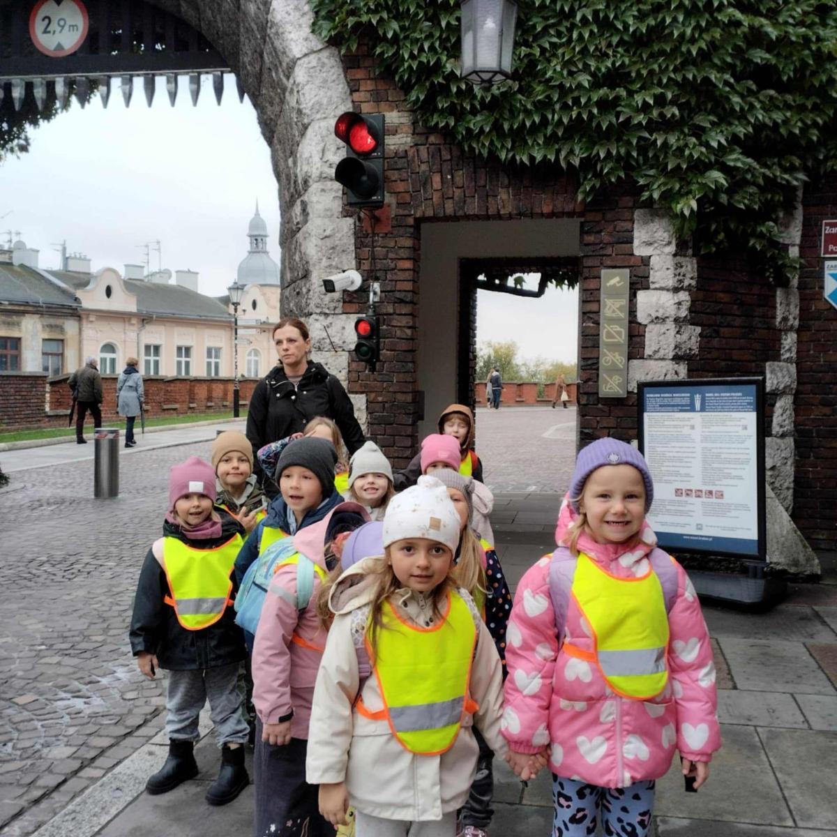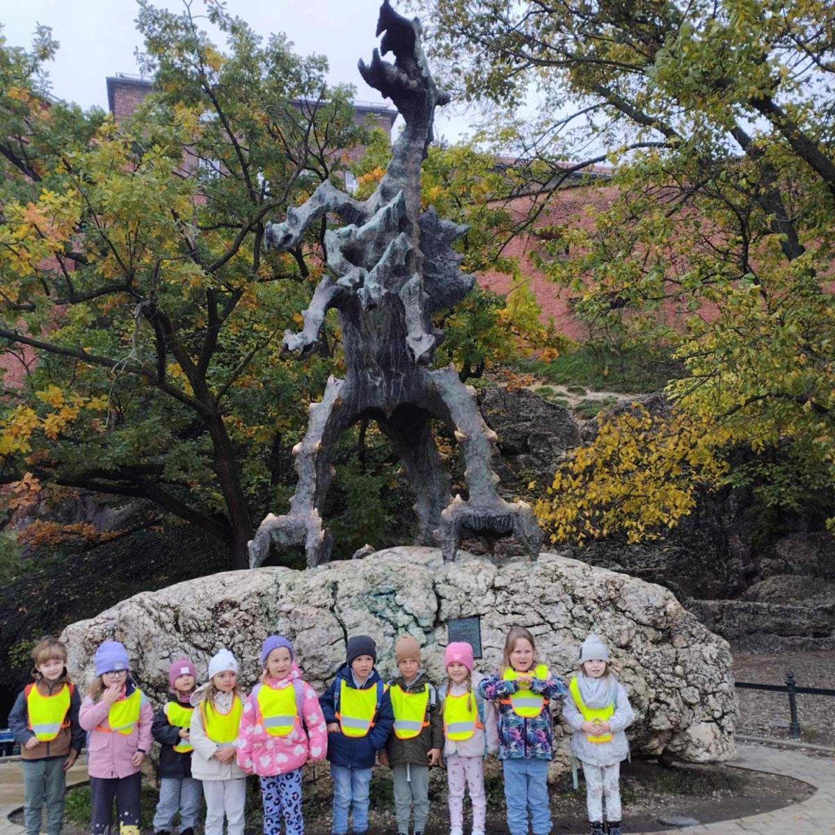 Wycieczka do Zamku Królewskiego w Krakowie. W dniu 9 października br. uczniowie grupy 0a uczestniczyli w niezwykłej lekcji muzealnej na Wawelu, zatytułowanej „Legendy krakowskie”. Podczas zajęć dzieci miały okazję przenieść się w świat dawnych opowieści związanych z historią Krakowa i Zamku Królewskiego. Poznały m.in. legendę o smoku wawelskim, o królu Zygmuncie, szczerbcu oraz o głowie wawelskiej. Dzieci z zainteresowaniem słuchały Pani przewodnik, oglądali miejsca związane z legendami i chętnie dzielili się swoimi spostrzeżeniami. W drodze powrotnej ze wzgórza wawelskiego odwiedziliśmy Smoka Wawelskiego. Wycieczka była nie tylko ciekawym spotkaniem z historią, ale także świetną okazją do integracji grupy oraz wspólnego odkrywania piękna i tajemnic Krakowa.