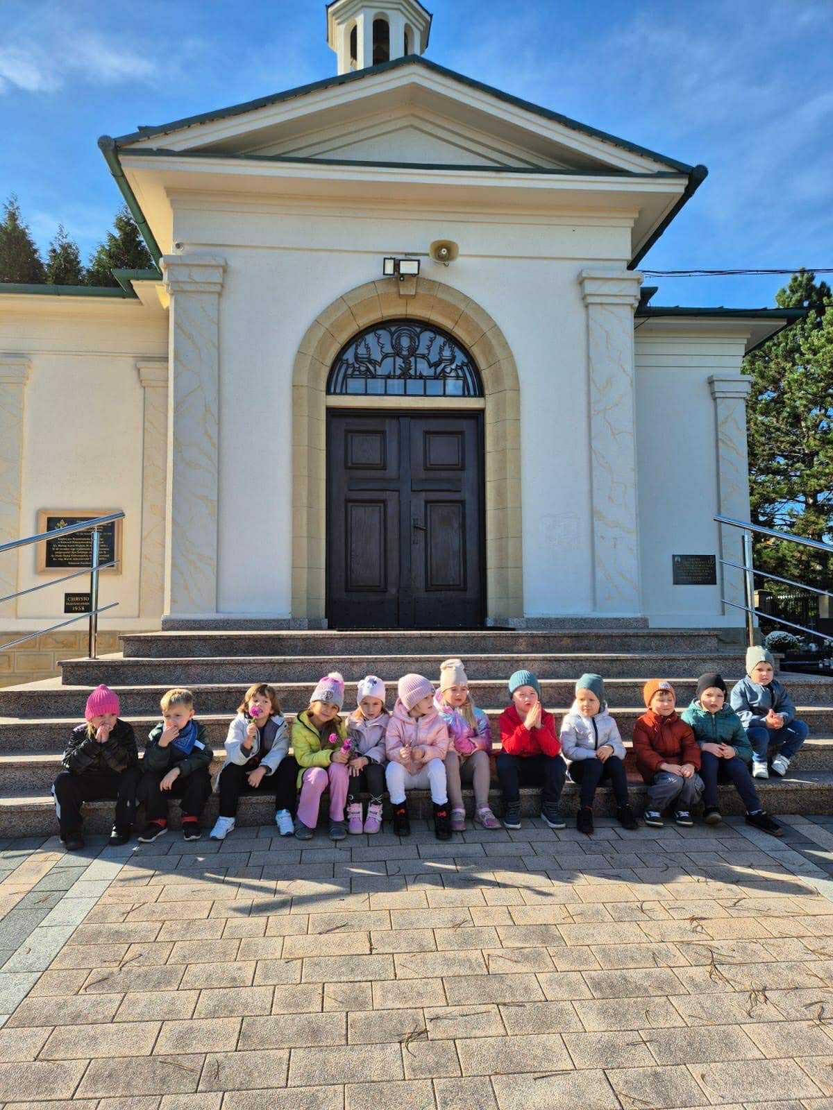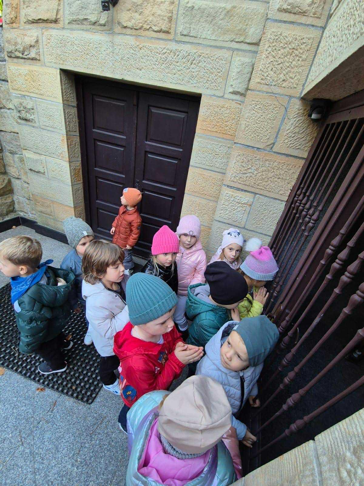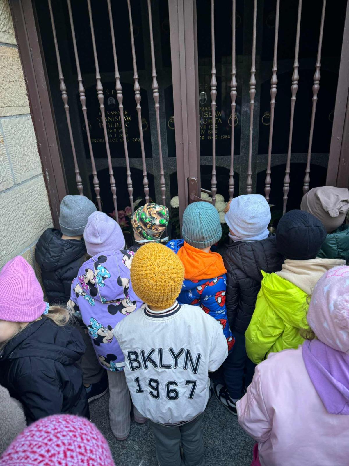 Wyjście przedszkolaków na cmentarz. Dzieci z grupy O B, Pszczółki