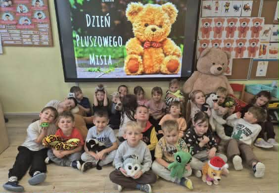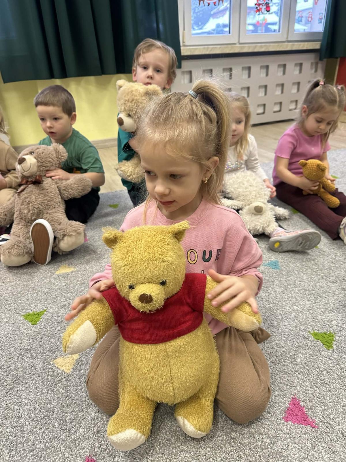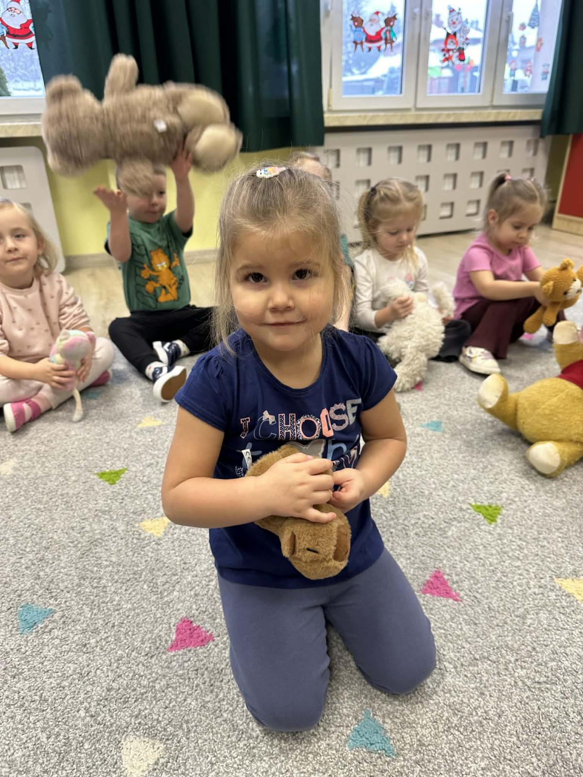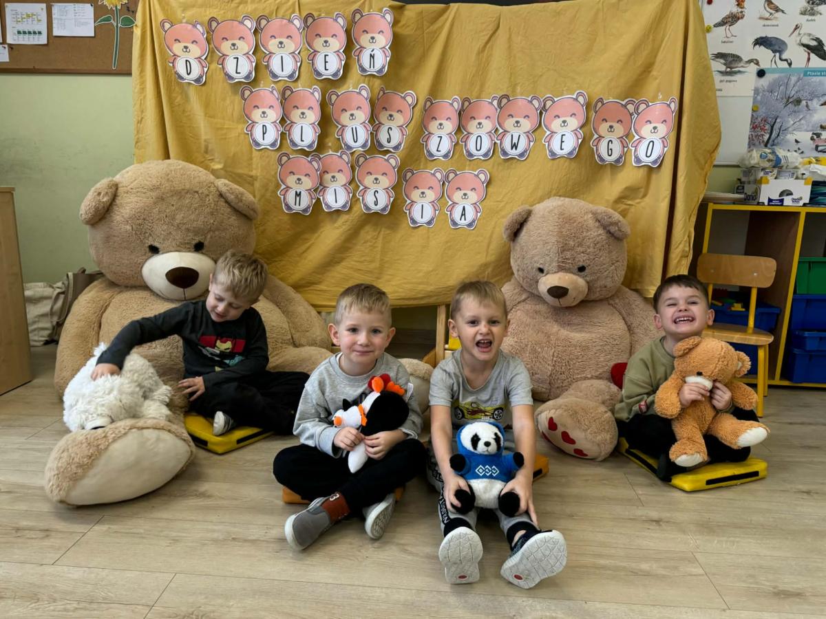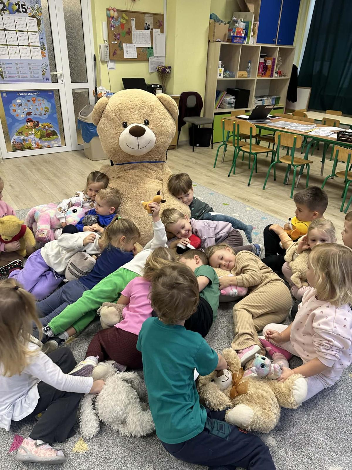 25 listopada obchodziliśmy Dzień Pluszowego Misia . Tego dnia każde dziecko miało w przedszkolu swojego ukochanego misia. Dzieci brały udział w wielu zabawach, śpiewały i tańczyły z misiami . Nie zabrakło wspólnych zabaw muzyczno – ruchowych przy piosenkach „Dwa misie”, „Niedźwiadek” i „Jadą misie” oraz słodkich niespodzianek. Ten dzień przebiegał w bardzo miłej i sympatycznej atmosferze, a uczestnikom sprawił wiele radości i dostarczył miłych wrażeń.