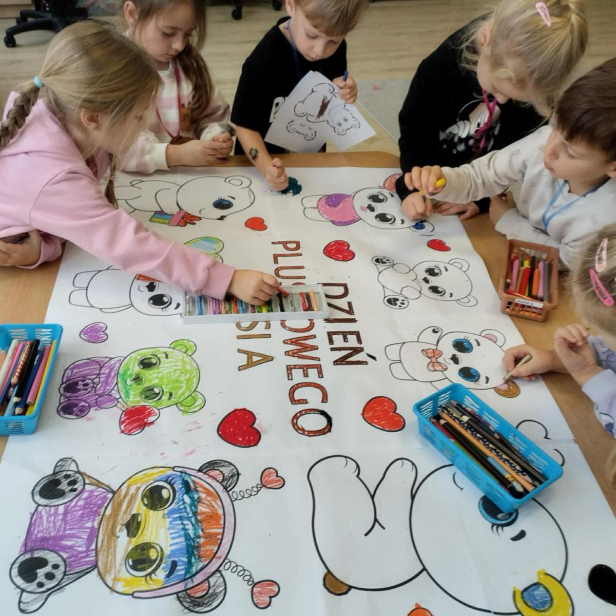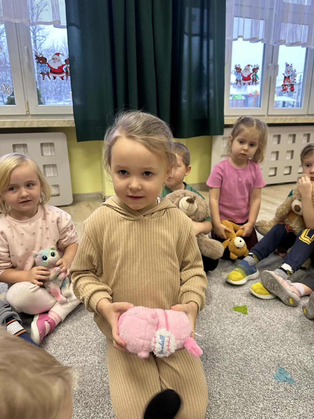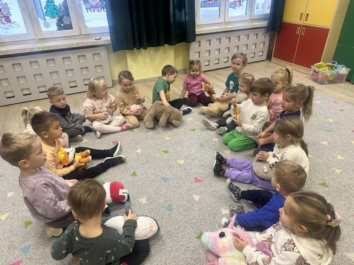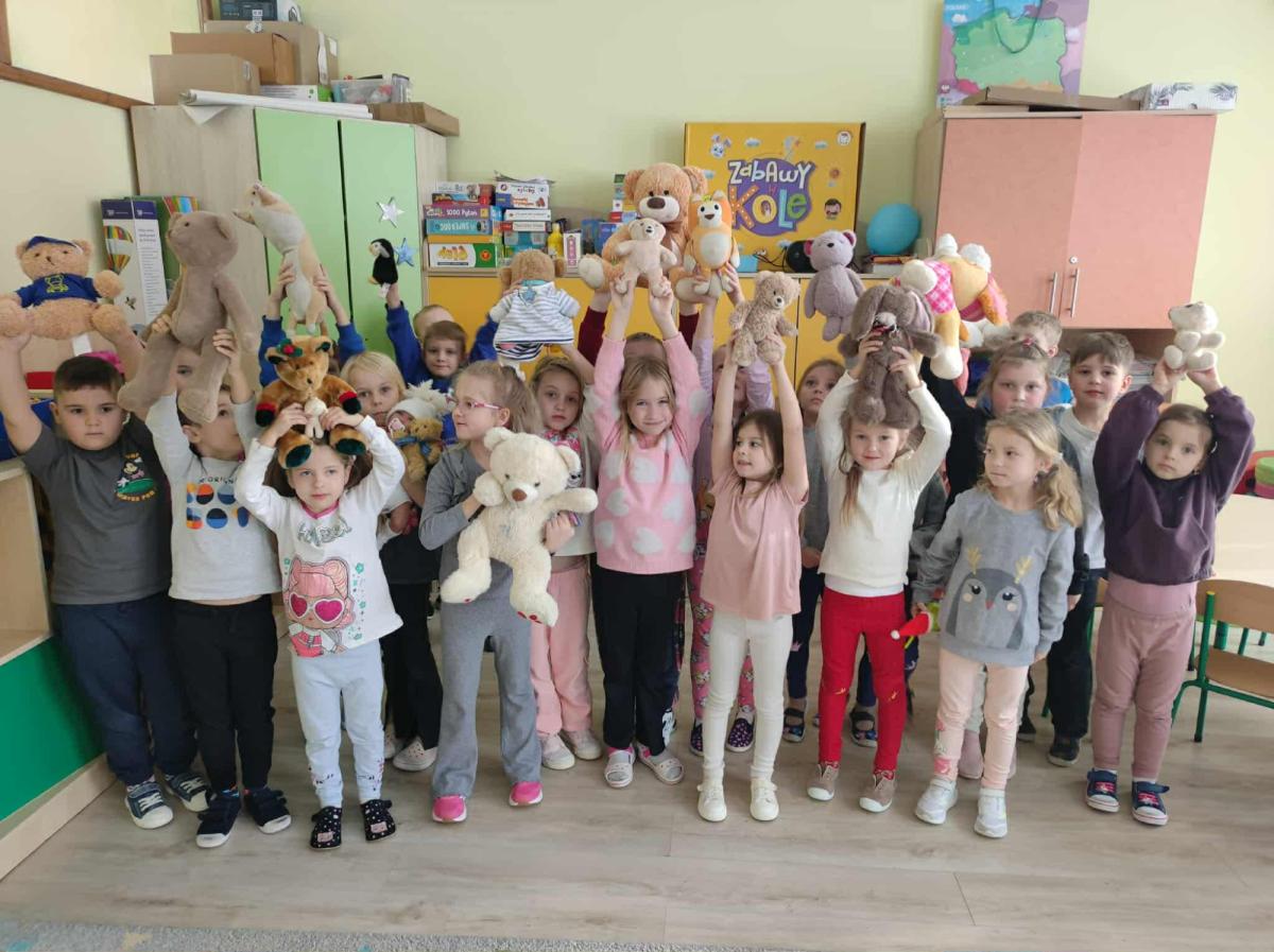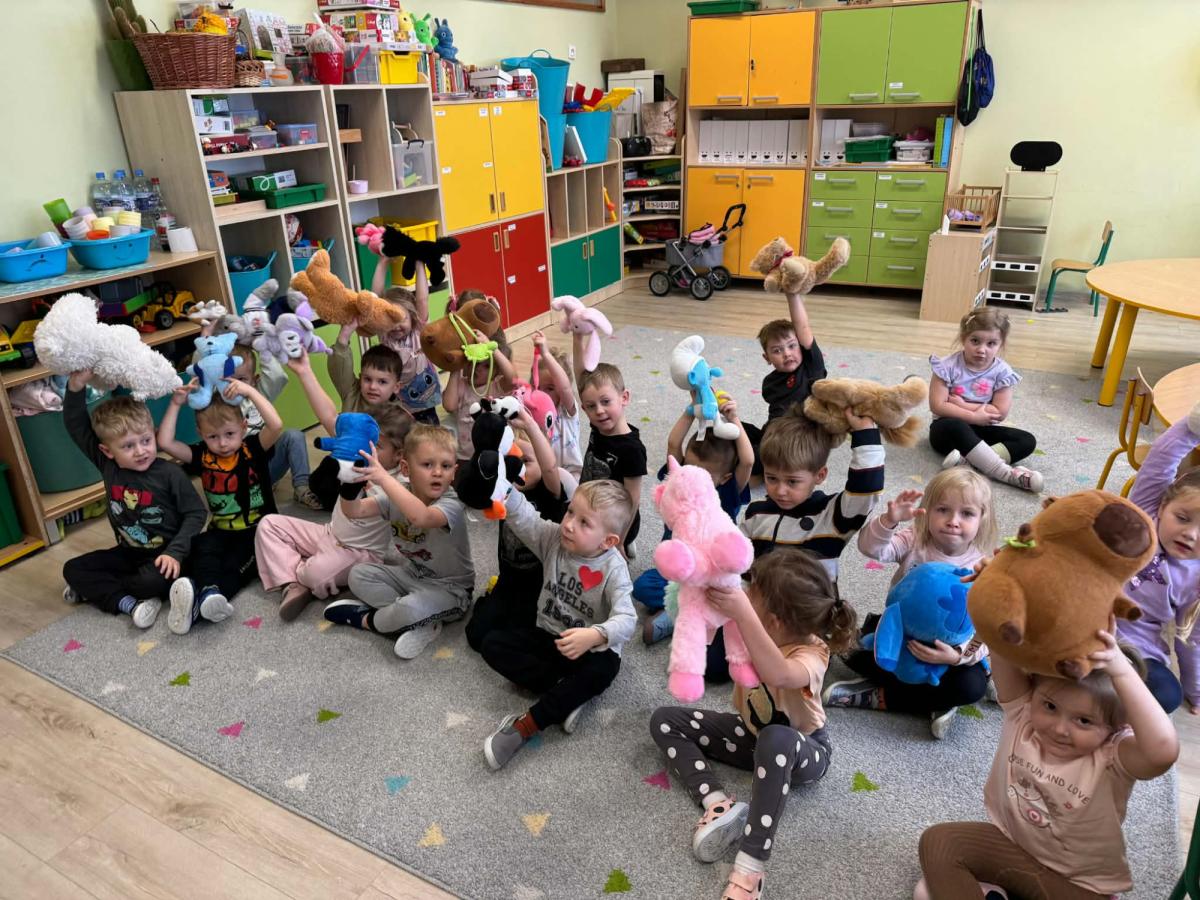 25 listopada obchodziliśmy Dzień Pluszowego Misia . Tego dnia każde dziecko miało w przedszkolu swojego ukochanego misia. Dzieci brały udział w wielu zabawach, śpiewały i tańczyły z misiami . Nie zabrakło wspólnych zabaw muzyczno – ruchowych przy piosenkach „Dwa misie”, „Niedźwiadek” i „Jadą misie” oraz słodkich niespodzianek. Ten dzień przebiegał w bardzo miłej i sympatycznej atmosferze, a uczestnikom sprawił wiele radości i dostarczył miłych wrażeń.