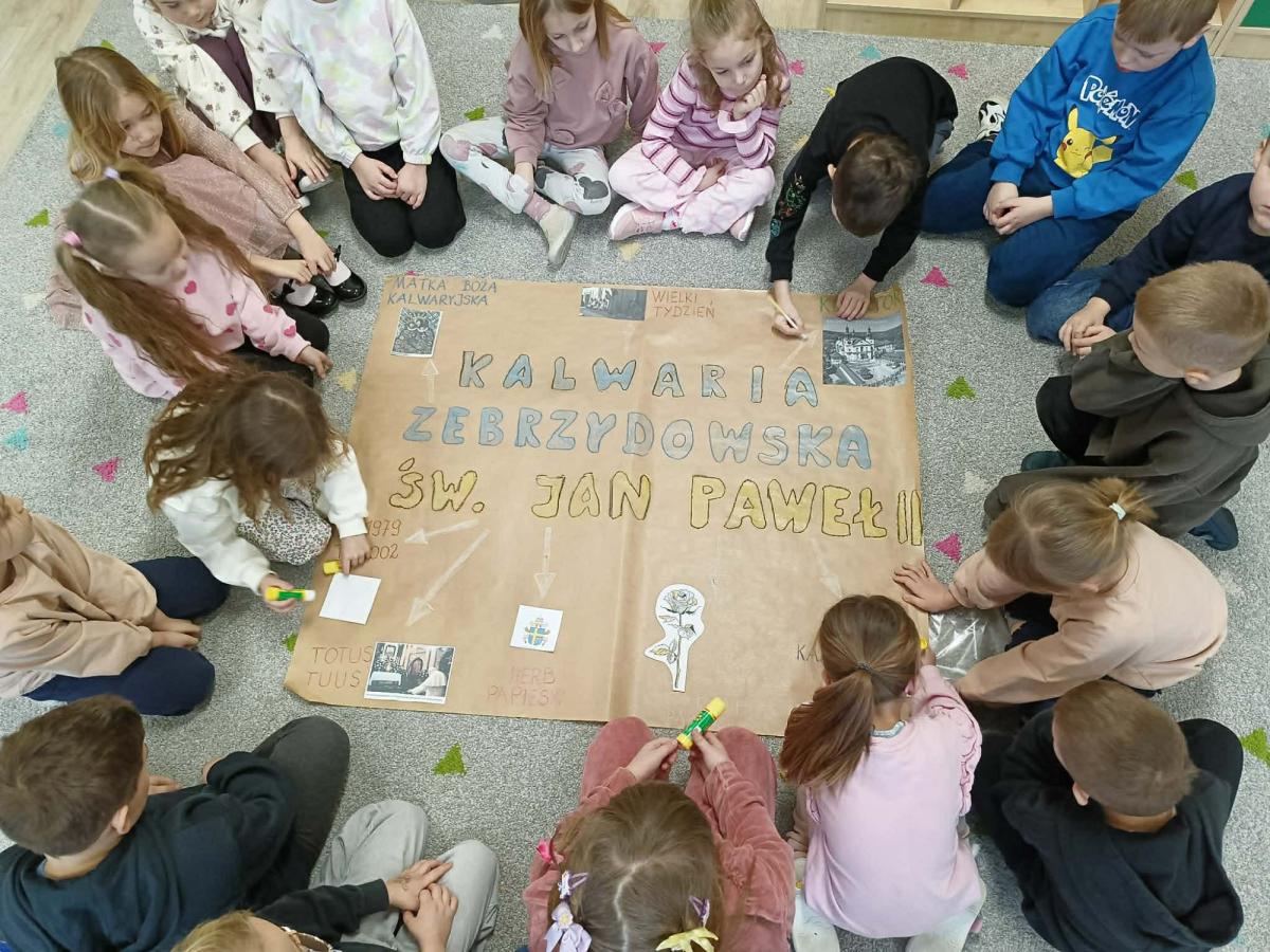 W ramach innowacji pedagogicznej pt.: „Święty Jan Paweł II”, przedszkolaki z grupy „0 c” m.in. wykonały prace plastyczne „Flaga papieska” i „Róża”, obejrzały prezentacje multimedialne dotyczące Kalwarii Zebrzydowskiej i Wadowic, udały się na spacer do Sanktuarium Pasyjno – Maryjnego w Kalwarii Zebrzydowskiej oraz uczestniczyły w quizie wiedzy o św. Janie Pawle II. Głównym celem innowacji było poznanie osoby św. Jana Pawła II – patrona miasta Kalwaria Zebrzydowska.