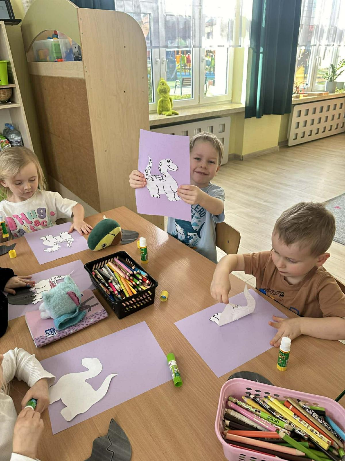 W przedszkolu świętowaliśmy Dzień Dinozaura – dzieci wyruszyły w podróż do prehistorycznych czasów, aby poprzez zabawy i zadania edukacyjne poznać życie dinozaurów. Przedszkolaki poznały ciekawostki o dinozaurach oraz dowiedziały się kim jest paleontolog. Wykonały wiele prac plastycznych wykorzystując przy tym różne materiały. Nie zabrakło też pamiątkowych zdjęć. Dzień Dinozaura przeniósł nas w odległy, fascynujący i wciąż tajemniczy świat.